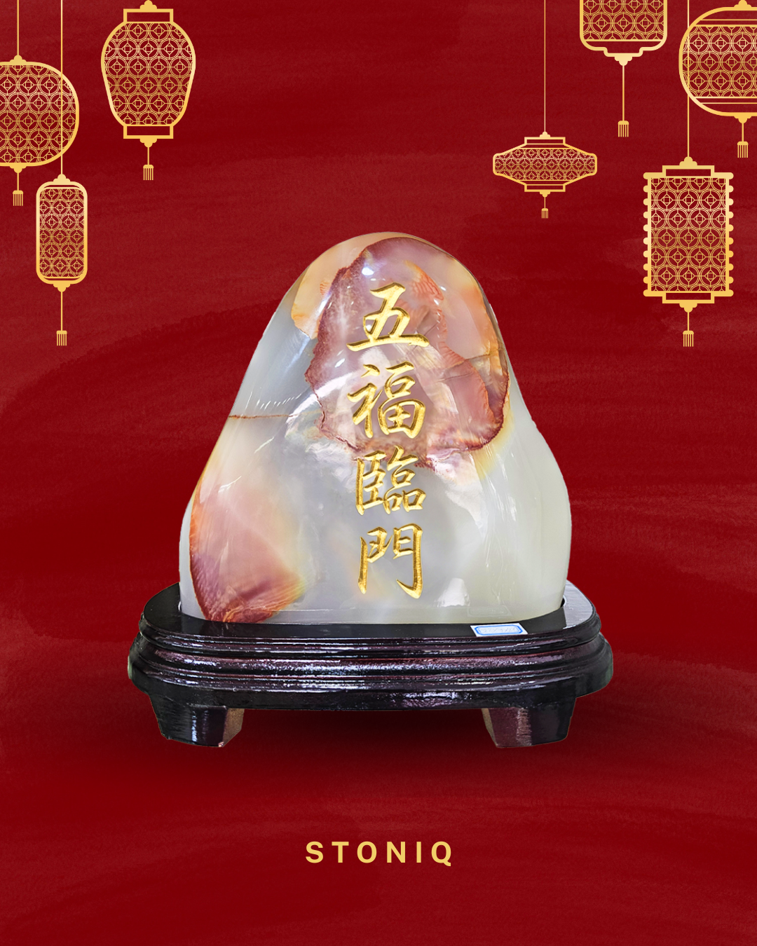 ✅ 可於石面或底座刻上祝福字句(如「五福臨門」、「福運綿延」、「萬事勝意」、「財福雙全」)