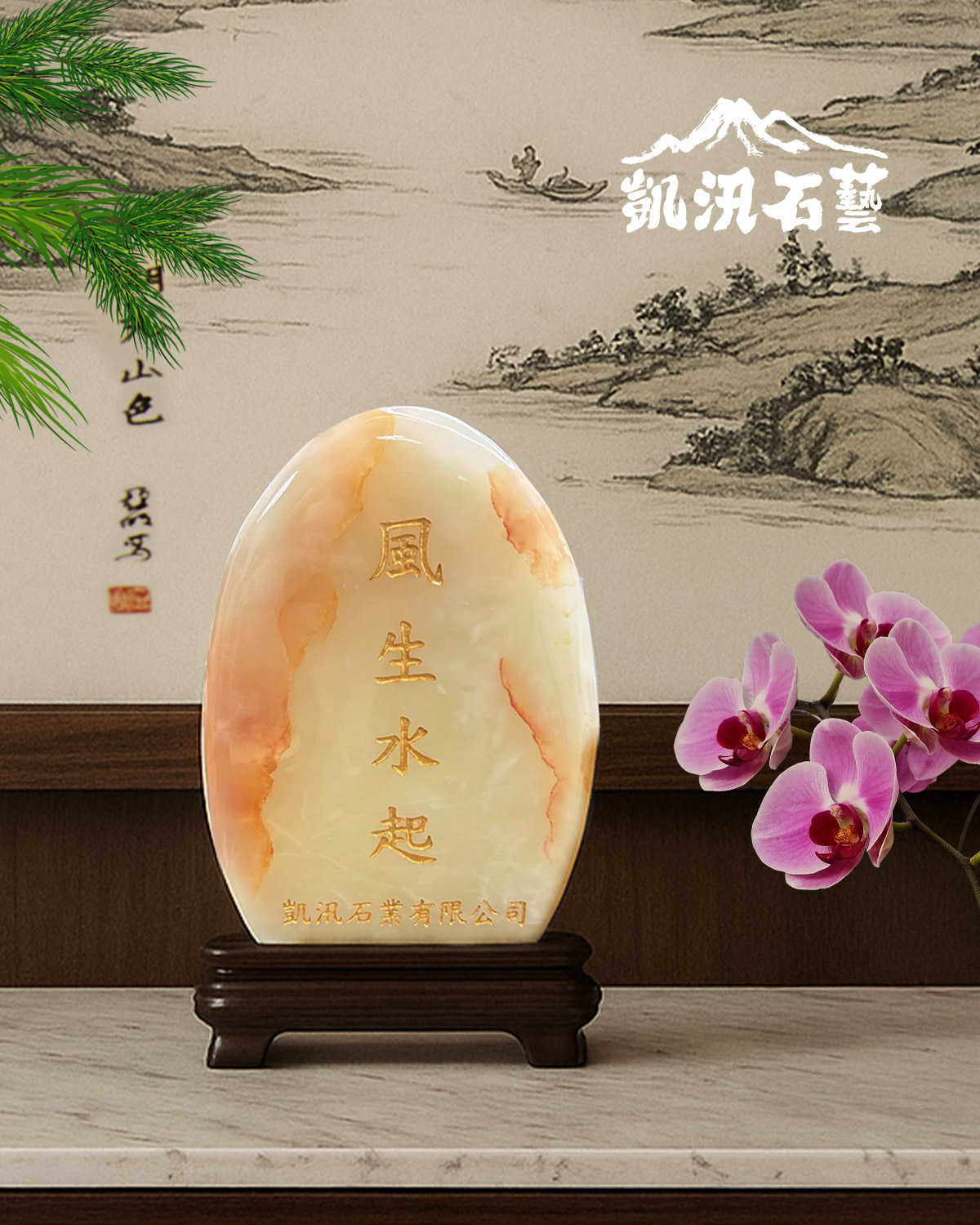 ✅ 可於石面或底座刻上吉祥字句(如「風生水起」、「財源廣進」、「大展鴻圖」等)